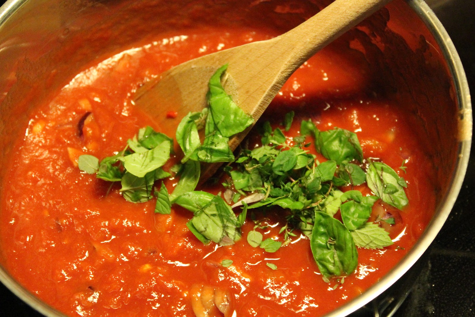 Pilko kaikki ainekset (lukuunottamatta hillosokeria ja tomaati murskaa). Kiehauta tomaatti murske ja lisää sipulit, chilit ja yrtit.